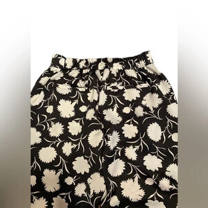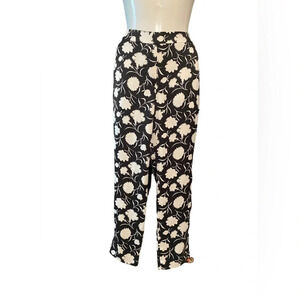 Boden Ludlow Satin Trousers Pants Black Leafy Bud Floral Print