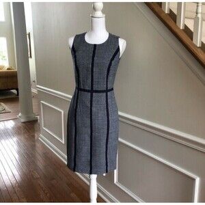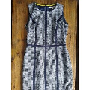 Boden MCM Geometric Classic Designer Soho Blue White Sleeveless Sheath Sz4
