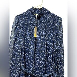 Boden Mara Bramble smocked blue long sheer sleeves dress