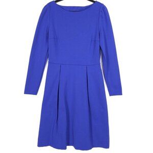 Boden Melanie Ponte Knit A-Line Pleated Long Sleeve Dress 6R Greek Blue J0772