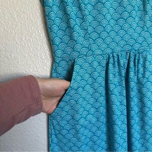 Boden Melinda Seashell Jersey Sleeveless Blue with pockets Midi Dress.