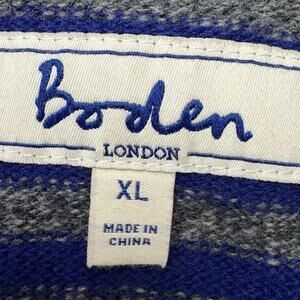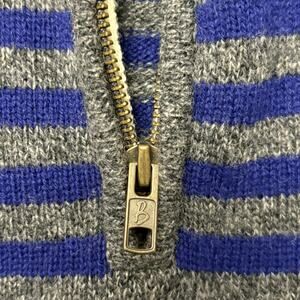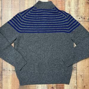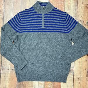 Boden Men’s Wool Half Zip Sweater XL Gray Blue Striped Pullover Warm Knit