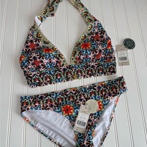 Boden Merano Bikini Swimsuit Halter Deep V Top Bottom Swim Women US 8 NEW 713
