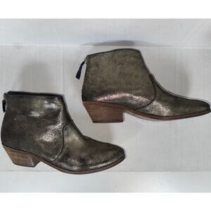Boden Metallic Gold Leather Ankle Boots Booties Womens 40 US 9.5 Stacked Heel