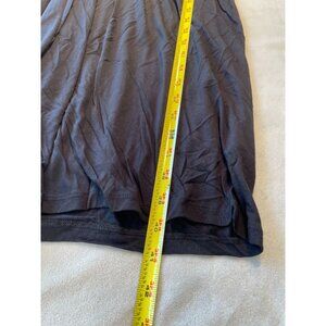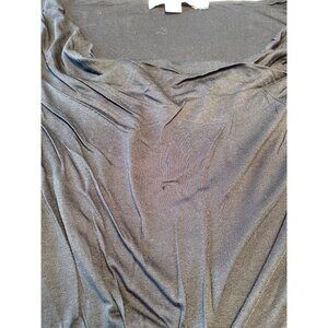 This black midi dress offers a comfortable fit with its stretchy fabric, flattering draped design, and practical side zip closure for effortless wear.