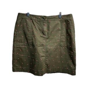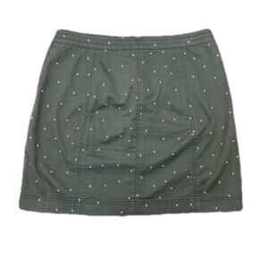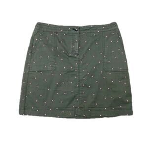 Boden Mini A-Line Skirt Embroidered Polka Dot Print Pockets Green Pink Size 10 R