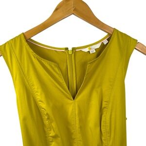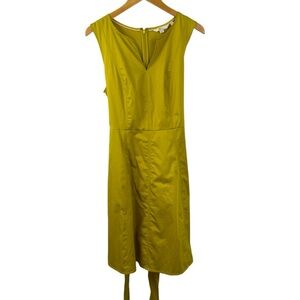 Boden Mischa Belted Chartreuse Dress Size 12 Sleeveless Shift Stretchy Cotton W0588