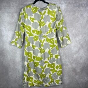 Boden Mod Print Silk Long Sleeve Retro MCM Dress In Green Women's Size 4R