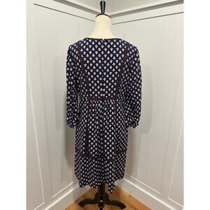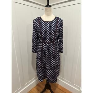 Navy blue, light pink and red. Side pockets. Elastic at cuffs. Back zipper. Unlined. 100% viscose.