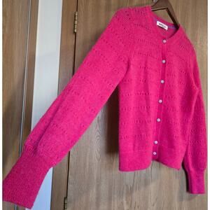 Boden Mohair Wool Blend Fluffy Textured Cardigan Vibrant Pink