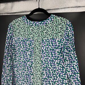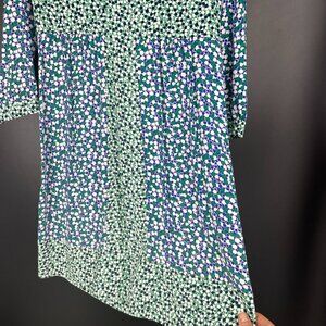 Boden Mollie Dress Dot Print Blue, White and Green Quarter Length Sleeve