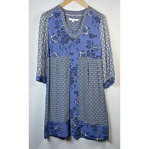 Boden Mollie Dress Floral Tunic blue gray US 4 Boho 3/4 sleeve small mini womens