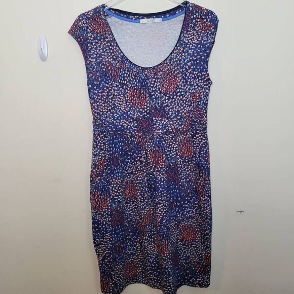 Boden Multicolor Casual Weekend Jersey Cap Sleeve Scoop Neck Fiitted Dress w/ p