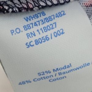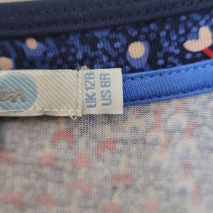 This style of Boden dress is the casual weekend fit with a fitted waist and a tulip style skirt with pockets. Color is a dark blue with a cute red and white pattern.