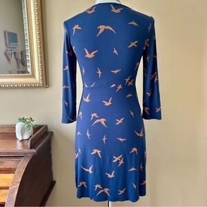 Boden Must Have Tunic Dress Navy Birds Print Novelty 3/4 Sleeve Mini Jersey 6
