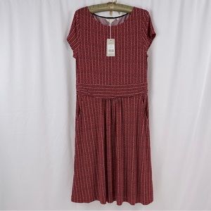 Boden NWT Cherry Red Chevron Twist Amelie Jersey A-Line short sleeve Dress 10