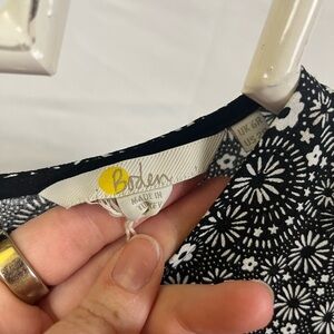 This beautiful Boden dress is perfect for any occasion. With a high neckline and long sleeves, it provides both style and comfort. The black ditzy floral pattern adds a touch of elegance, while the mini length adds a fun and flirty element. Made for women, this dress is perfect for any fashion-forward individual. Its unique floral theme and short dress length make it a great addition to any wardrobe. Don't miss out on this amazing opportunity to add a stylish and versatile dress to your collection.