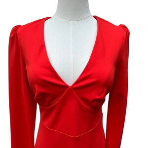 Boden NWT Red V-Neck Midi Length Long Sleeve Tea Dress Size 2