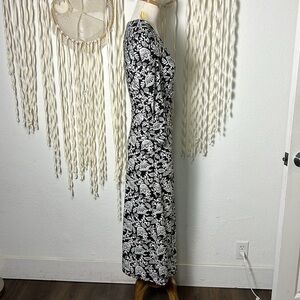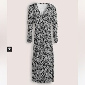 Boden NWT Ruched Jersey Midi Dress in Black and Ivory Tulip Vine Size US2P
