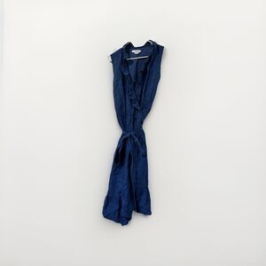 Boden Nancy Linen Midi Dress Ruffle Wrap Tie Waist Blue size 6 Sleeveless