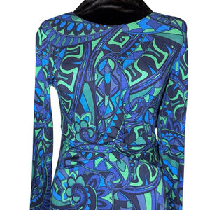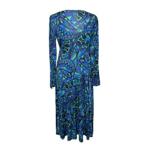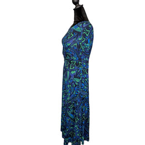 Boden Nancy Ponte Midi Dress Size 4P Blue Green Long Sleeve Bright Twist