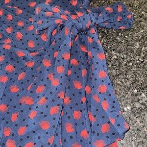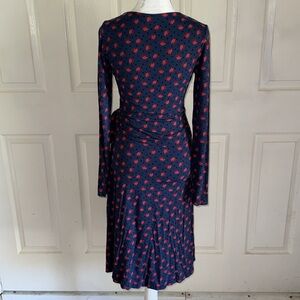 Boden navy and red jersey knit long sleeve faux wrap scoop neck Silvia dress. Size 4R. 15 1/2” armpit to armpit laid flat. 41 1/2” shoulder to hem. Very good pre owned condition