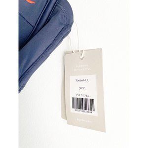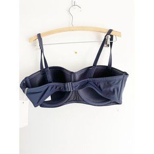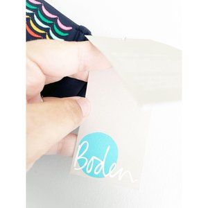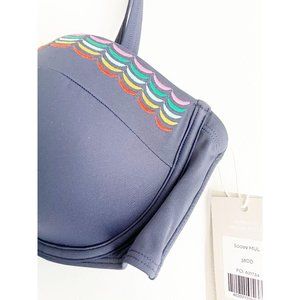 Stylish navy bikini top by Boden. Features multicolor wave trim. Adjustable straps for comfort.