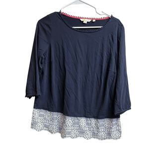 Boden Navy Blue Broderie Eyelet Overlay Women's Blouse