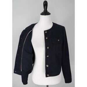 Boden Navy Blue Button Up Cotton Cropped Blazer Jacket Size 8