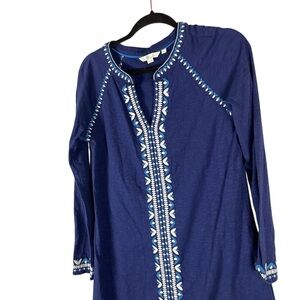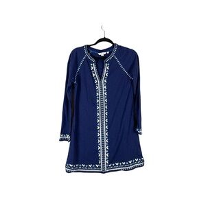 Boden Navy Blue Embroidered Long Sleeve Cotton Tunic Dress Size Small