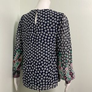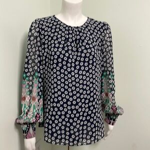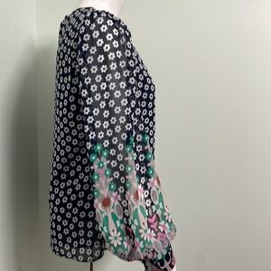 Boden Navy Blue Floral Blouson Sleeve Blouse