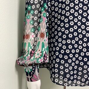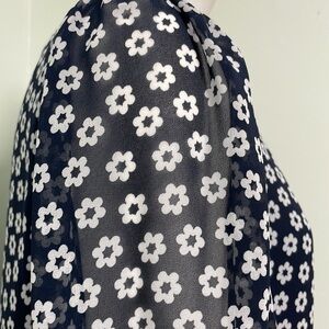 Sheer navy blouse with white flower print