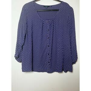 Boden Navy Blue Pink Polka Dots Viscose Scoop Neck 3/4 Sleeve Button Blouse