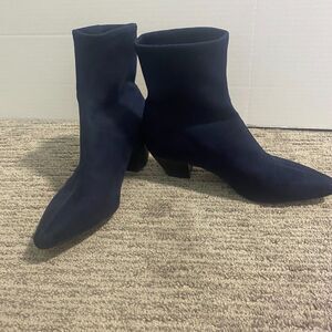 Boden | Navy Blue Suede Western Stretch Booties Heel Ankle
