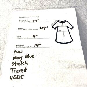 Measurements: Chest width 17 inches (pit to pit), Waist 14 inches (across), Length 47 inches (center of neck to hem), Arm length 19 inches (shoulder seam to cuff)