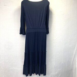 Boden Navy Blue Tiered Maxi Dress Womens 6 Split Neck Bell Sleeve Stretch Jersey