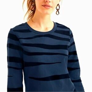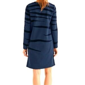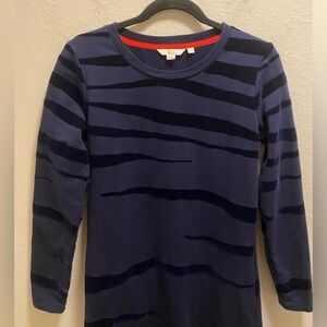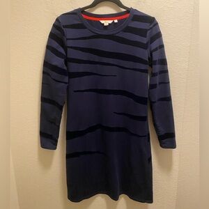 Boden Navy Blue Velvet Tiger Stripe Long Sleeve Sweatshirt Dress Size 8