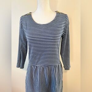 Boden Navy Blue White Stripe Zip Shoulder Jersey Midi Tea Dress