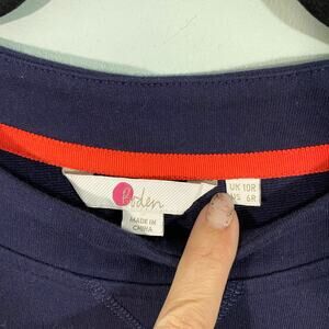 Boden Navy Livia Velvet Striped Cuff Quarter Sleeve Sweatshirt Dress Size 6R