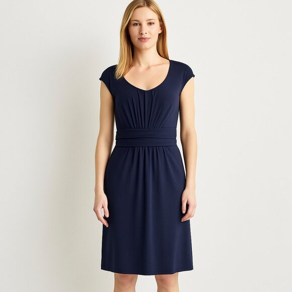 Boden Navy Ruched Waist Cap Sleeve Dress Size 2R