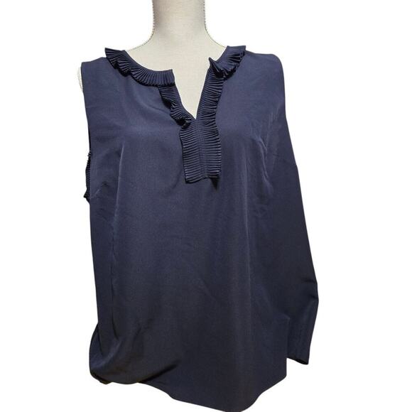 Boden Navy Sleeveless Ruffled Neckline Women's Blouse Size: 16