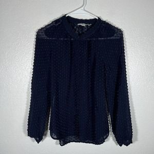 Boden Navy Textured Sheer Silk Blend Button Up Long Sleeve Blouse UK 6 US 2