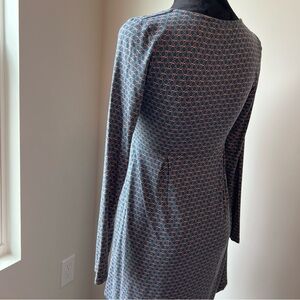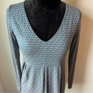 Boden Navy & White Geo Floral Empire Waist Dress Jersey Knit Stretch UK12/US8