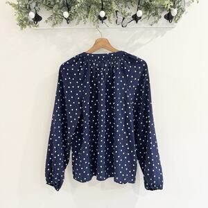Boden Navy White Polka Dot V Neck 100% Silk Blouse Size 6 CP