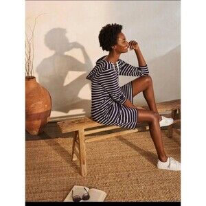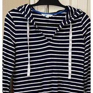 Boden Navy & White Striped Imelda Hooded Jersey Tunic Dress with Pockets size 4