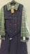 Chic quilted trench coat with navy body and green plaid sleeves. Features button details and a stylish belt. size 16-18