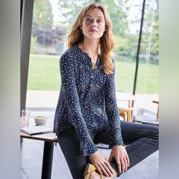 Boden Navy and White Polka Dot Blouse Jersey Material