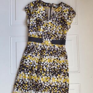 Boden Notch Neck Sheath Dress Yellow/Grey Dot Size 2