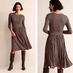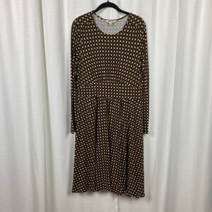 Boden Olive Green&Pink Abstract Diamond Long Sleeve Jersey Thea Dress Sz.12R
