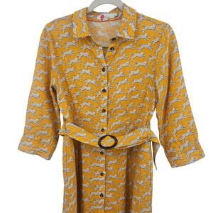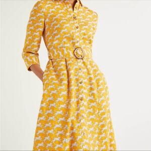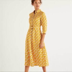 Boden Olivia Linen Shirt Dress - Yellow, Spotted Cheetah US 4 Petite